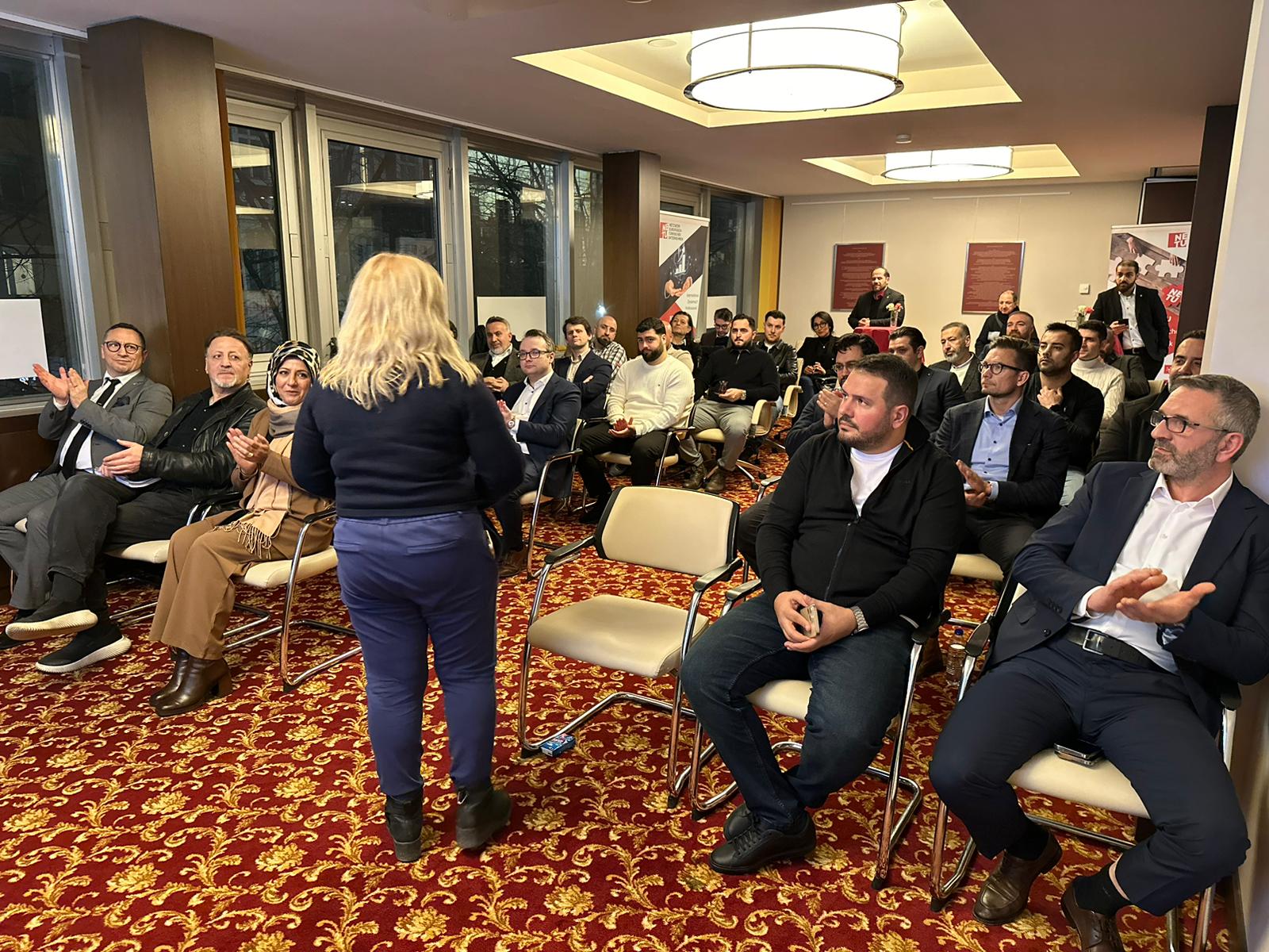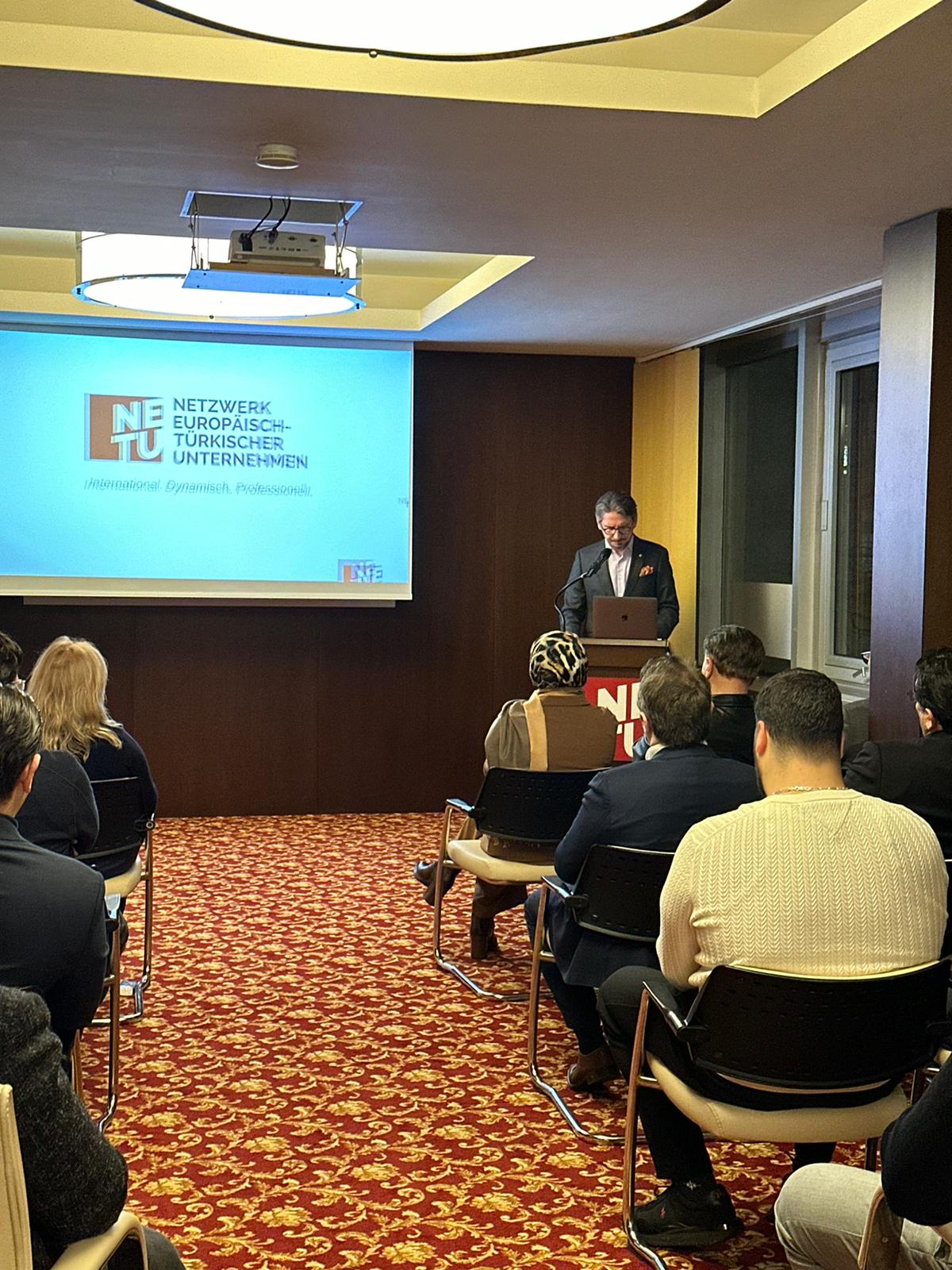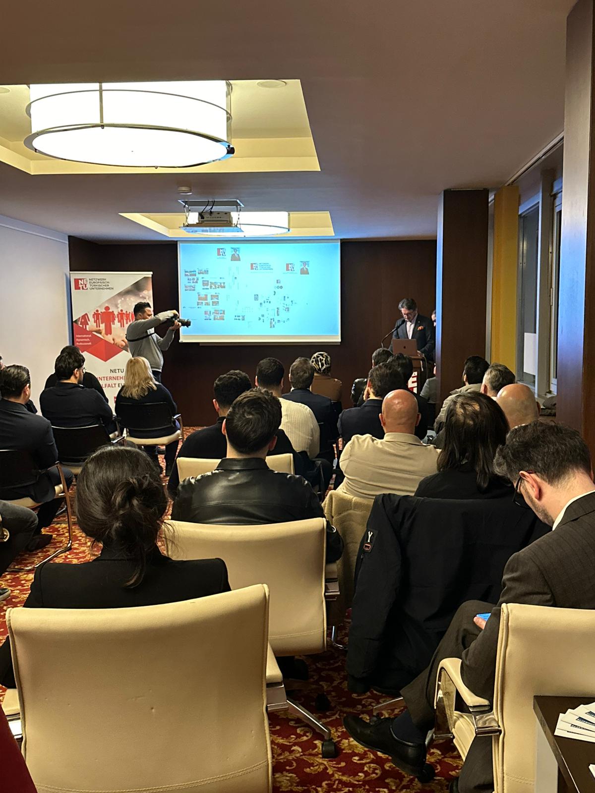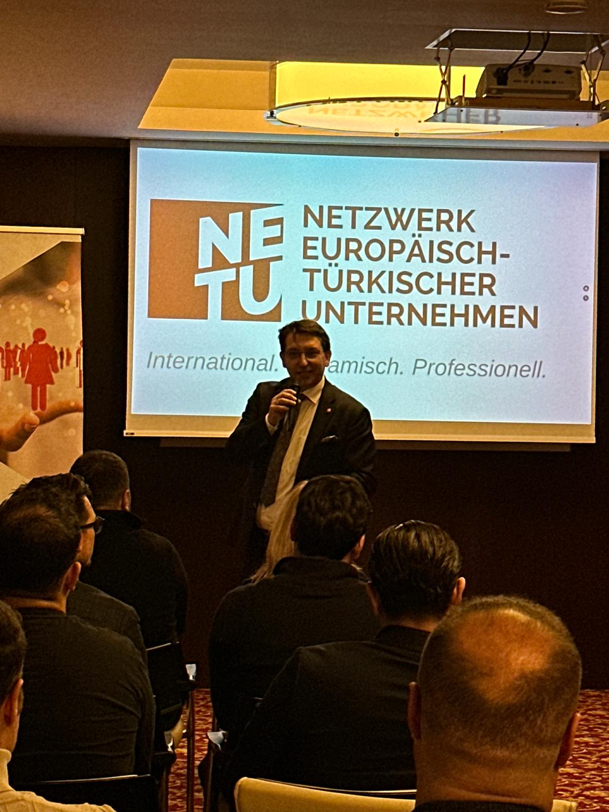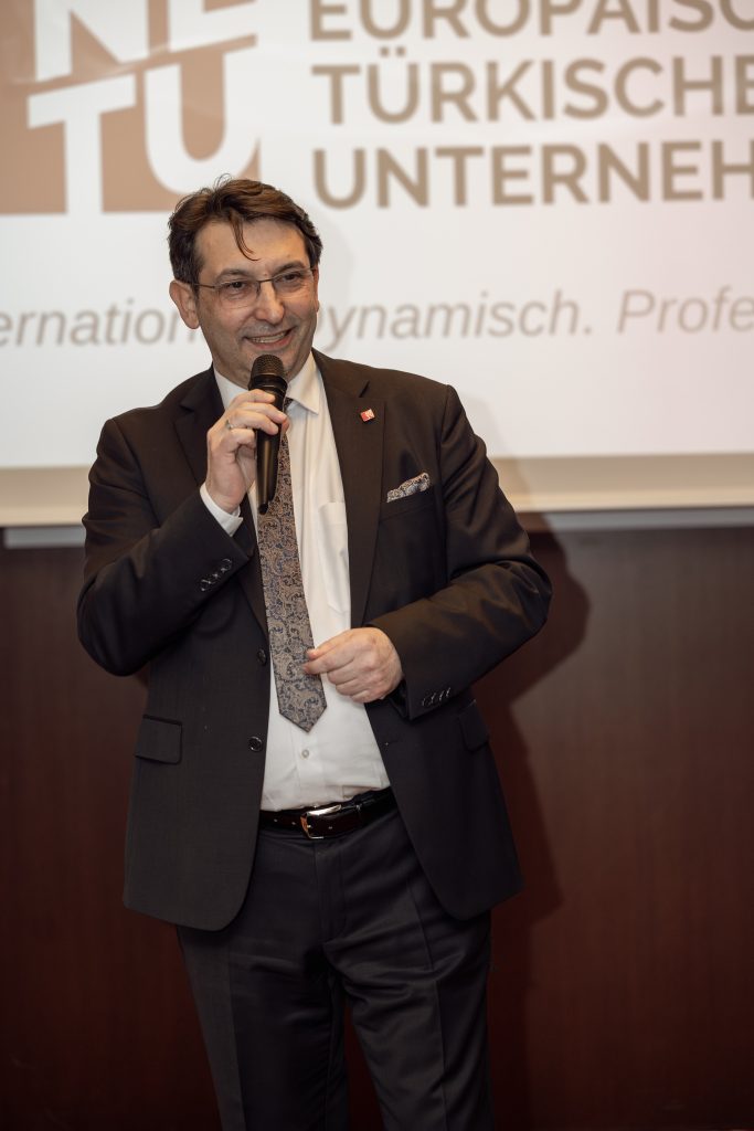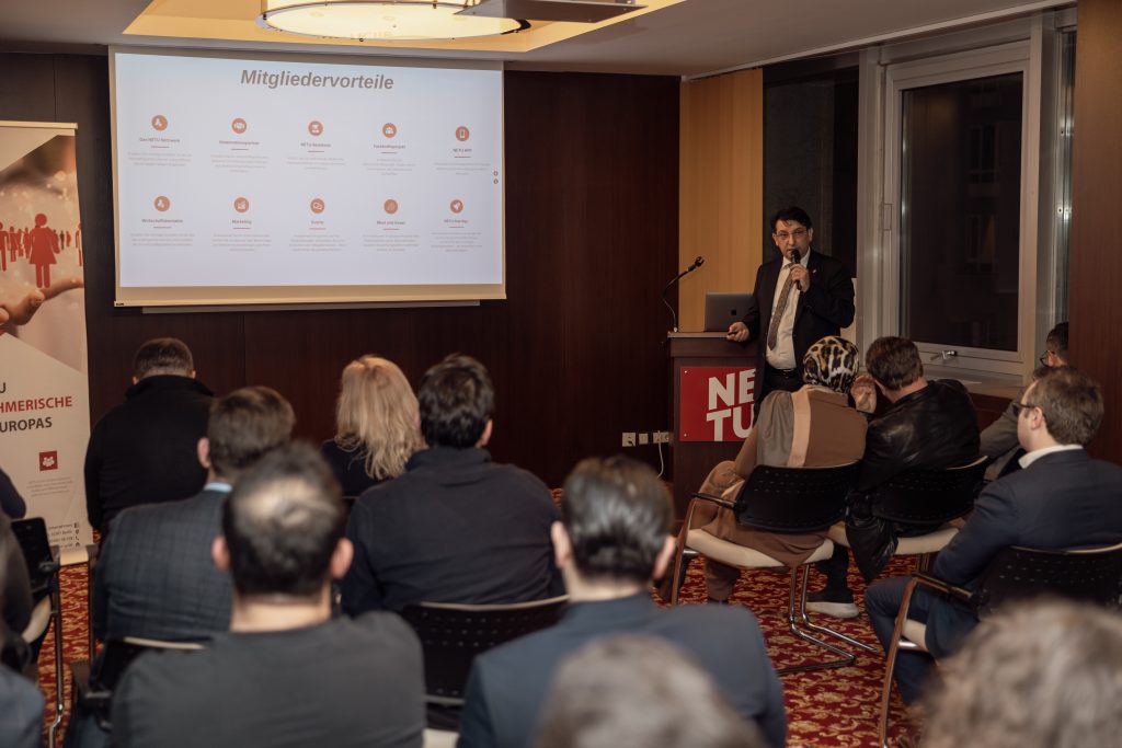 Danach präsentierte Önder Costan das weitreichende Handlungsspektrum des Vereins mit Hinweis auf die gesamtgesellschaftliche Rolle und die zahlreichen Vorteile für NETU Mitglieder. Besondere Aufmerksamkeit erregten die NETU App als digitale Wirtschaftsplattform des Netzwerks, die KI Workshopreihe oder das Fachkräfteprojekt zur Gewinnung von Mitarbeitern.