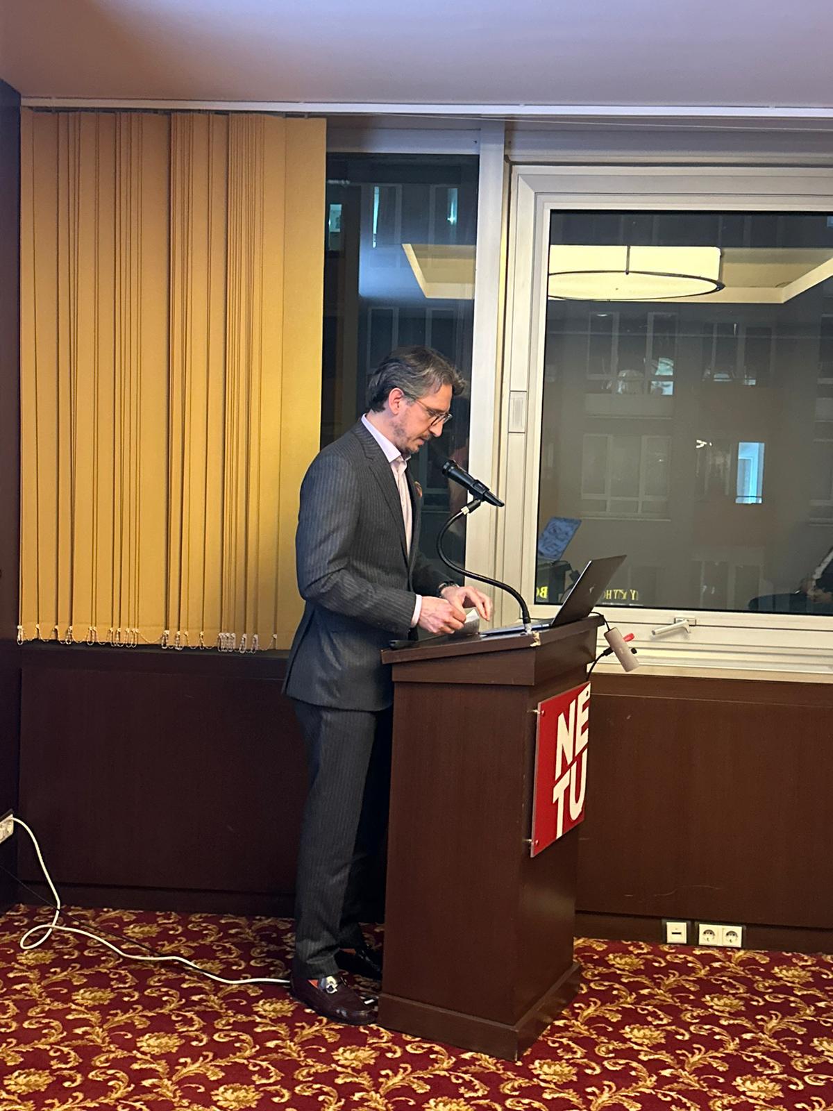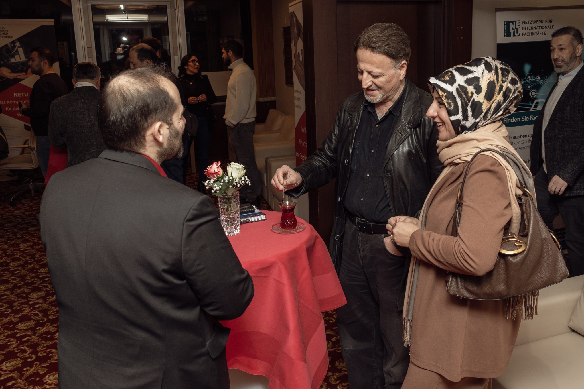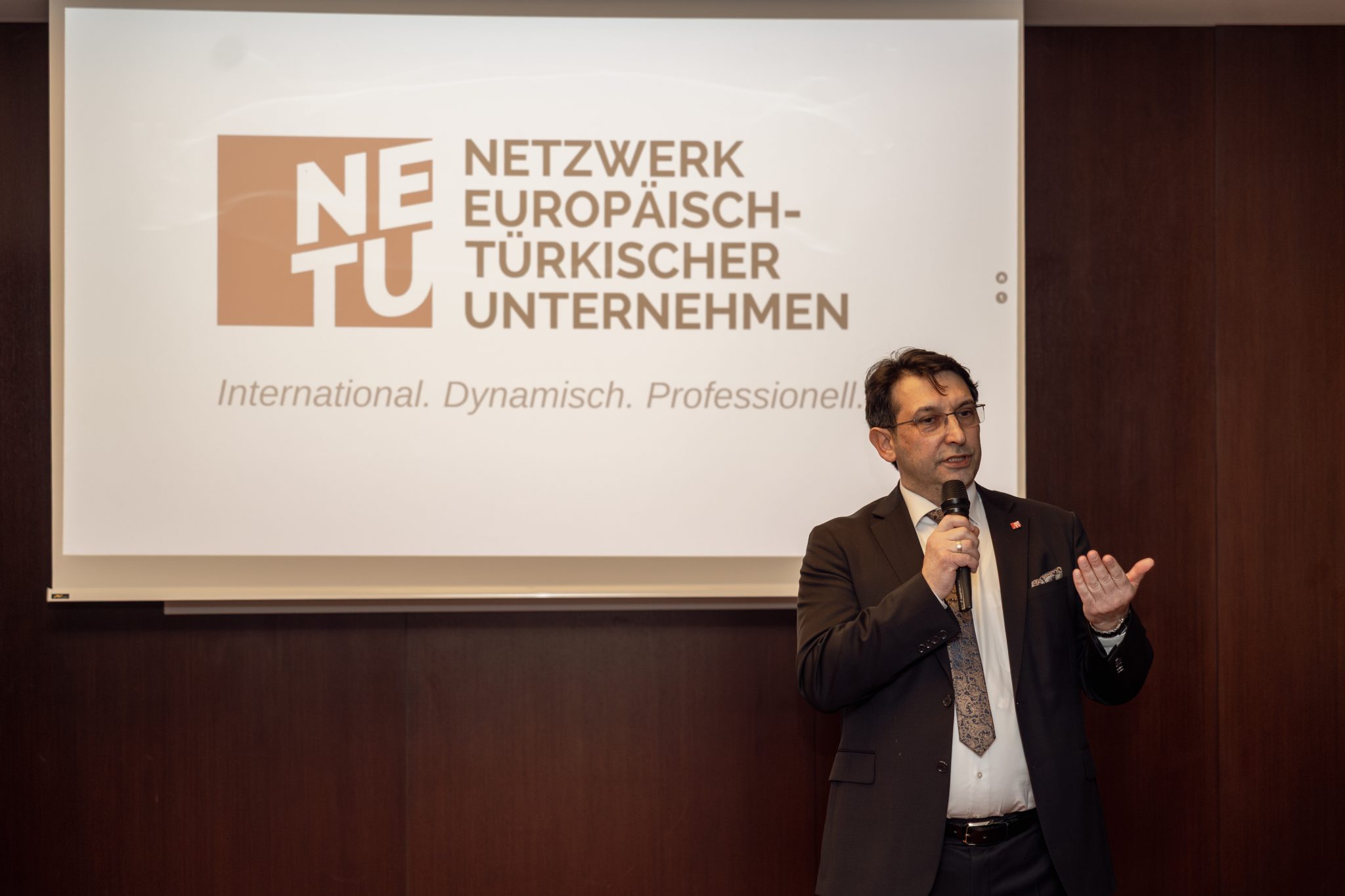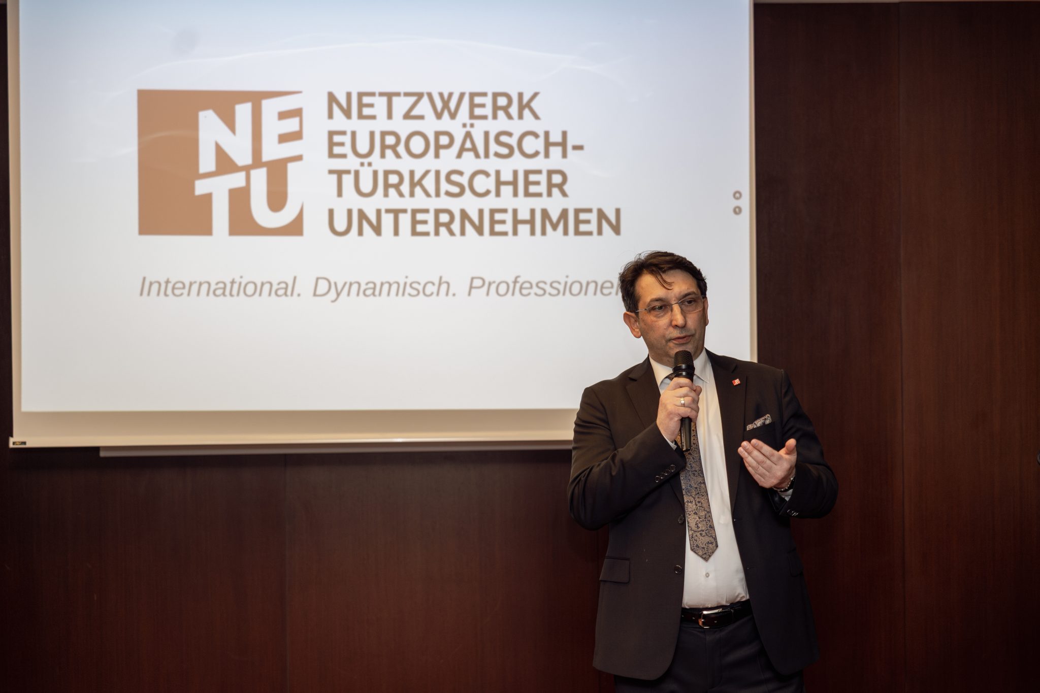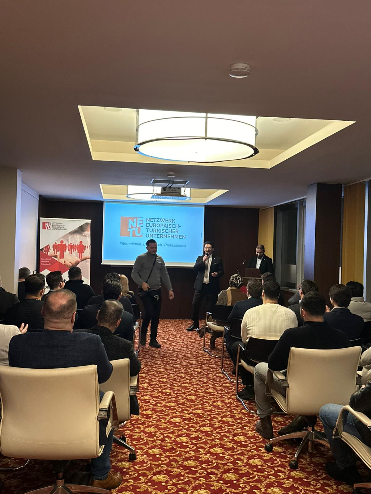 Danach präsentierte Önder Costan das weitreichende Handlungsspektrum des Vereins mit Hinweis auf die gesamtgesellschaftliche Rolle und die zahlreichen Vorteile für NETU Mitglieder. Besondere Aufmerksamkeit erregten die NETU App als digitale Wirtschaftsplattform des Netzwerks, die KI Workshopreihe oder das Fachkräfteprojekt zur Gewinnung von Mitarbeitern.