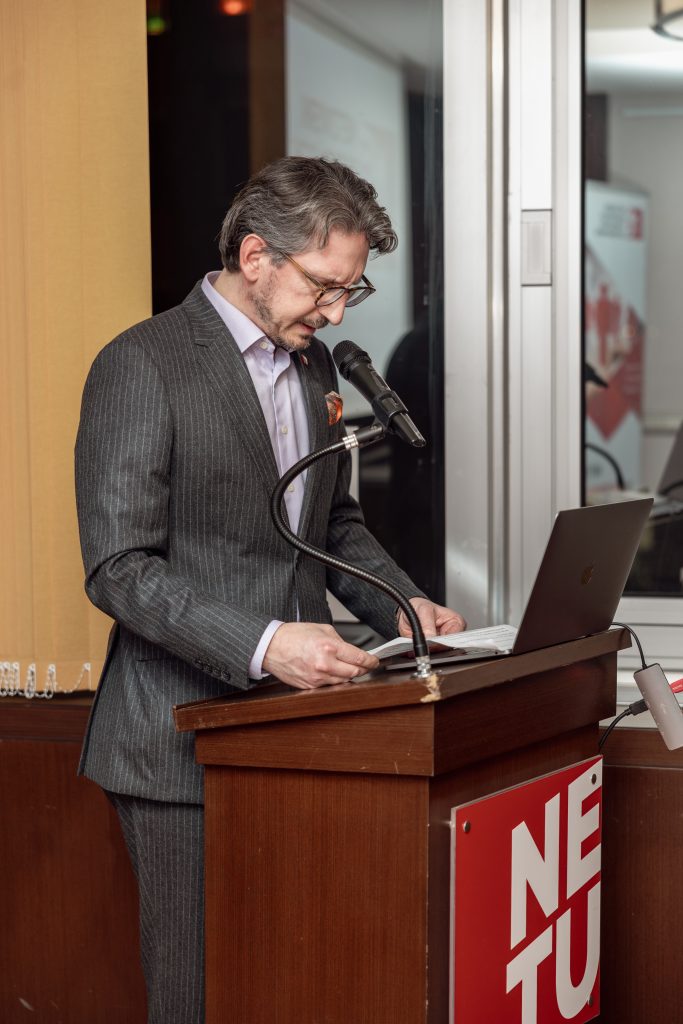 Daraufhin wandte sich der NETU Berlin Vorstandsvorsitzende, Bülent Göktekin an die Anwesenden und bedankte sich für die rege Teilnahme und den gemeinsamen Abend. Bülent Göktekin wies auf die Wichtigkeit von NETU als Kompetenzzentrum der migrantischen Wirtschaft und seiner gesamtgesellschaftlichen Rolle hin. Dabei unterstrich er das Engagement insbesondere der türkeistämmigen Unternehmen und den Mehrwert, den sie für unsere Gesellschaft und die deutsche Volkswirtschaft beitragen. Herr Göktekin lud zudem alle Anwesenden ein, dem NETU Netzwerk beizutreten und an den Zielen des Verbandes aktiv mitzuwirken. Daraufhin stellten alle Gäste sich und ihre Unternehmen vor.